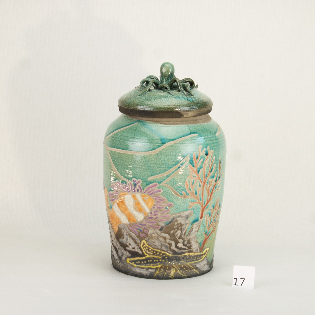 Urne en céramique raku ; unique ; numéroté et signé fabriqué en France artisanalement. Contenance 4Lou +